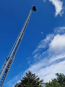 Dank der Löschgruppe 1 – Ost konnte man der Wirtfamilie Konrad ein besonderes Geschenk machen: man hob sie mittels der Drehleiter über deren Biergarten, damit sie sowohl ihren Garten als auch die Stadt Bamberg aus 30 Meter Höhe betrachten konnten.