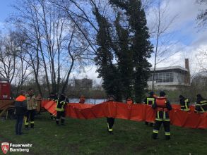 Jährlich wird gegen Ende März eine Schleusensperre am Main-Donau-Kanal verhängt. Diese dient den Wartungs- und Unterhaltungsarbeiten an den Schleusen und dem Kanal. Für den Ölwehrzug Stadt Bamberg der perfekte, aber auch einzige Moment im Jahr für eine Großübung. Denn gerade das Einbringen der sogenannten Ölsperre stellt den wichtigsten Teil bei einem Schadensfall dar.