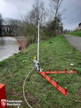 Währenddessen wurde auf der anderen Uferseite („jenseitig“), Höhe des alten Schwimmbades, ein sogenannter Erdanker geschlagen. Dieser besteht aus acht Erdnägeln und dient der Fixierung sowie Stabilisierung der eingebrachten Ölsperre und muss entgegen der Strömungsrichtung weiter oben angebracht werden.