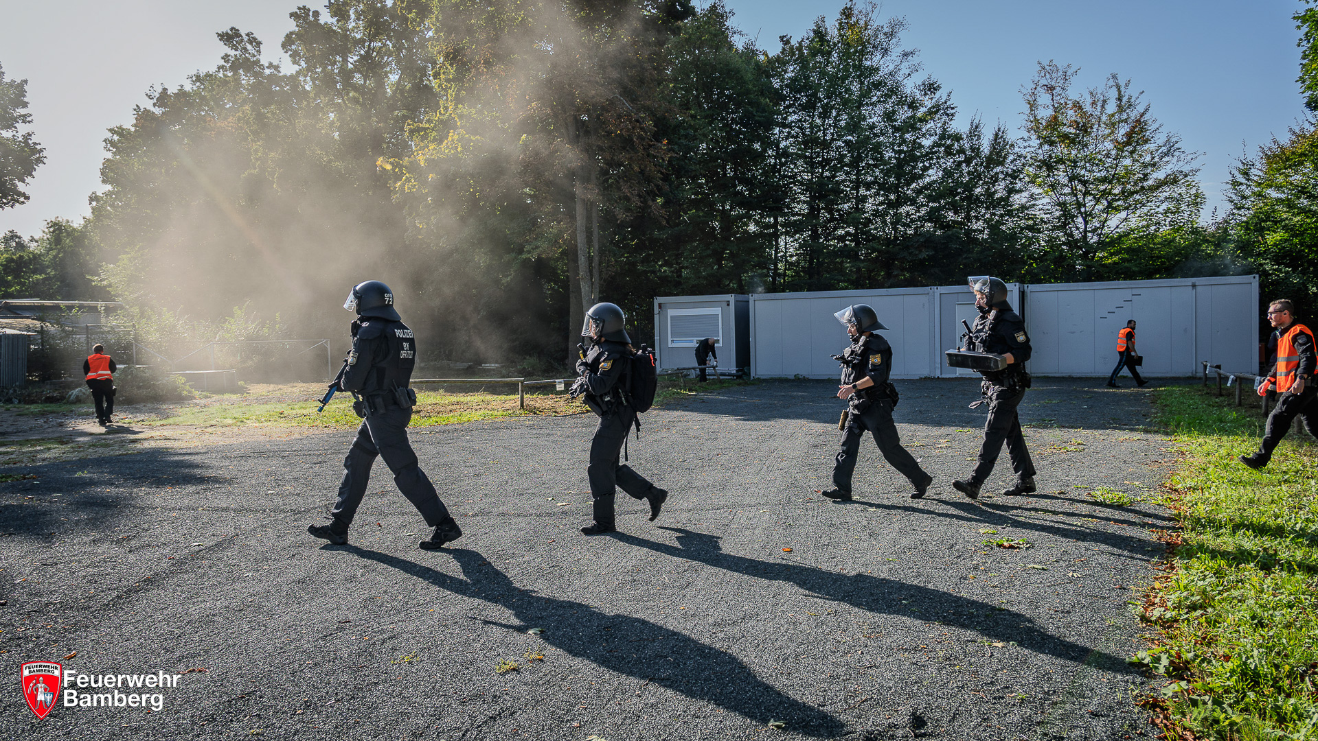 Am Samstag, den 13. September 2025, fand im Fuchs-Park-Stadion Bamberg eine großangelegte Katastrophenschutzübung unter der Leitung des Amtes für Brand- und Katastrophenschutz der Stadt Bamberg statt. Neben Polizei, Rettungsdiensten und Kliniken beteiligte sich auch die Feuerwehr Bamberg mit rund 30 Einsatzkräften. Eingesetzt waren die Löschgruppen Wildensorg und Bug sowie die Führungsunterstützungseinheit der Löschgruppe Ost. Im Ernstfall hätte die Feuerwehreinsatzleitung auch den örtlichen Einsatzleiter gestellt.
