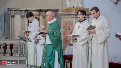 Im Gottesdienst dankte Pfarrer Helmut Hetzel allen Anwesenden – von Bürgermeister Jonas Glüsenkamp sowie weiteren Mitgliedern des Bamberger Stadtrates über Feuerwehrleute bis hin zu den Bürgerinnen und Bürgern – für ihr zahlreiches Kommen. Er hob die Bedeutung der neuen Fahrzeuge für die Sicherheit der Stadt hervor und betonte den Schutz, den die Feuerwehr der Bevölkerung bietet. Symbolisch für die Fahrzeuge stand eine Spielzeug-Drehleiter vor dem Altar. Deren kleiner Besitzer freute sich sehr, dass diese auch den kirchlichen Segen erhalten sollte. Die Szene verdeutlichte die Gemeinschaft der Feuerwehrfamilie mit allen Beteiligten von Jung bis Alt.