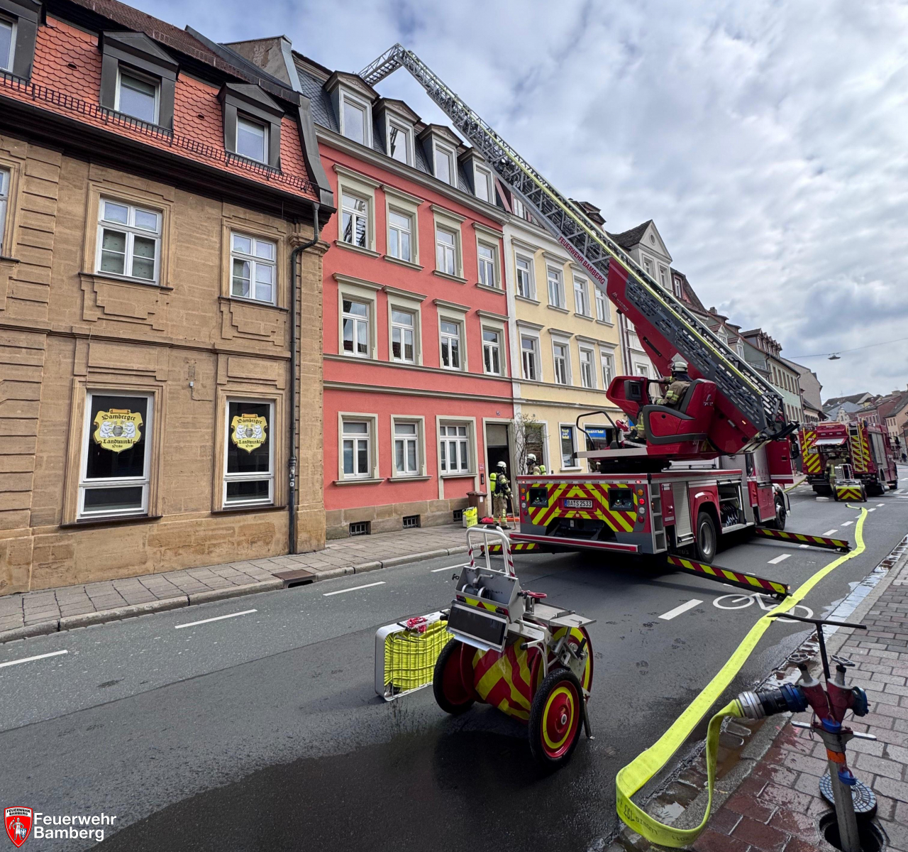 Am Dienstag nach Mittag wurde die Feuerwehr Bamberg zu einem gemeldeten Dachstuhlbrand in die Innenstadt alarmiert. Passanten bemerkten starke Rauchentwicklung und vermuteten ein Brandereignis in der Dachhaut eines Gebäudes.