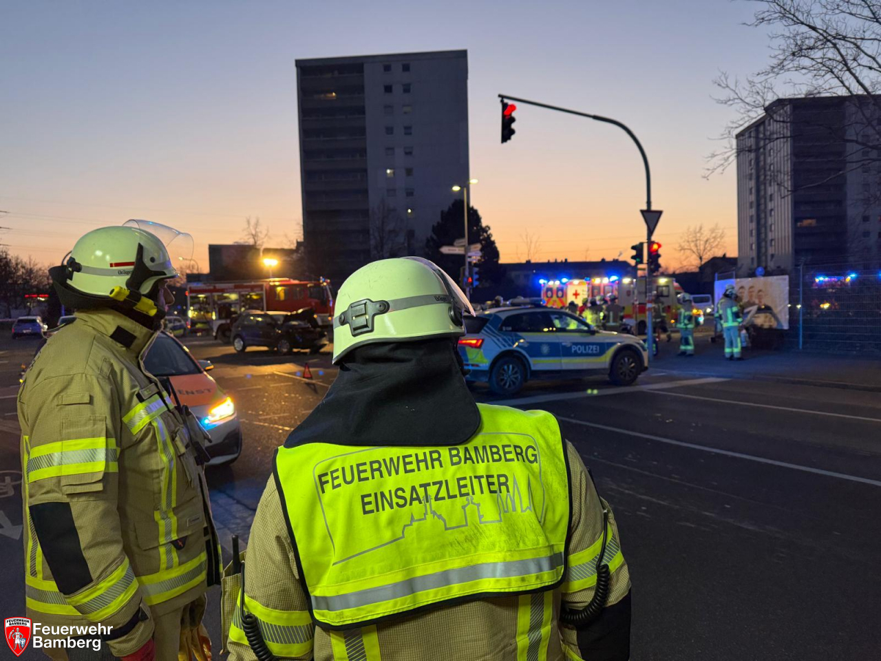 In den Morgenstunden wurde die Feuerwehr Bamberg erneut zu einem schweren Verkehrsunfall auf den Berliner Ring alarmiert. Zwei Fahrzeuge prallten ineinander. In beiden Fahrzeugen wurden eingeklemmte Personen gemeldet.