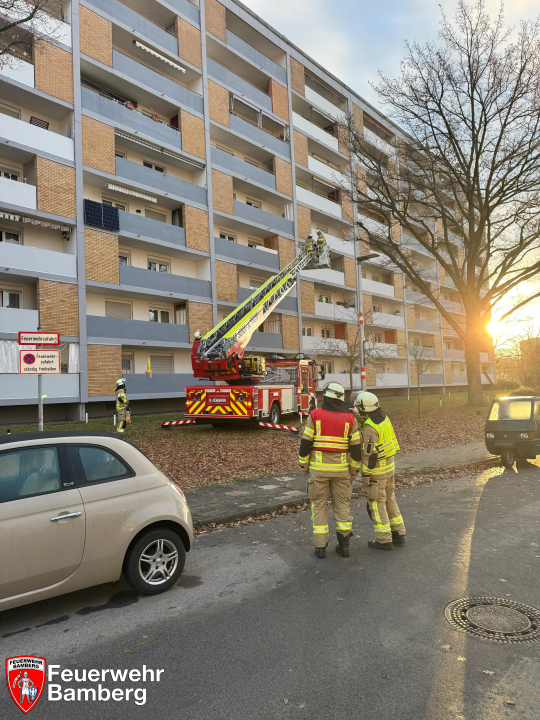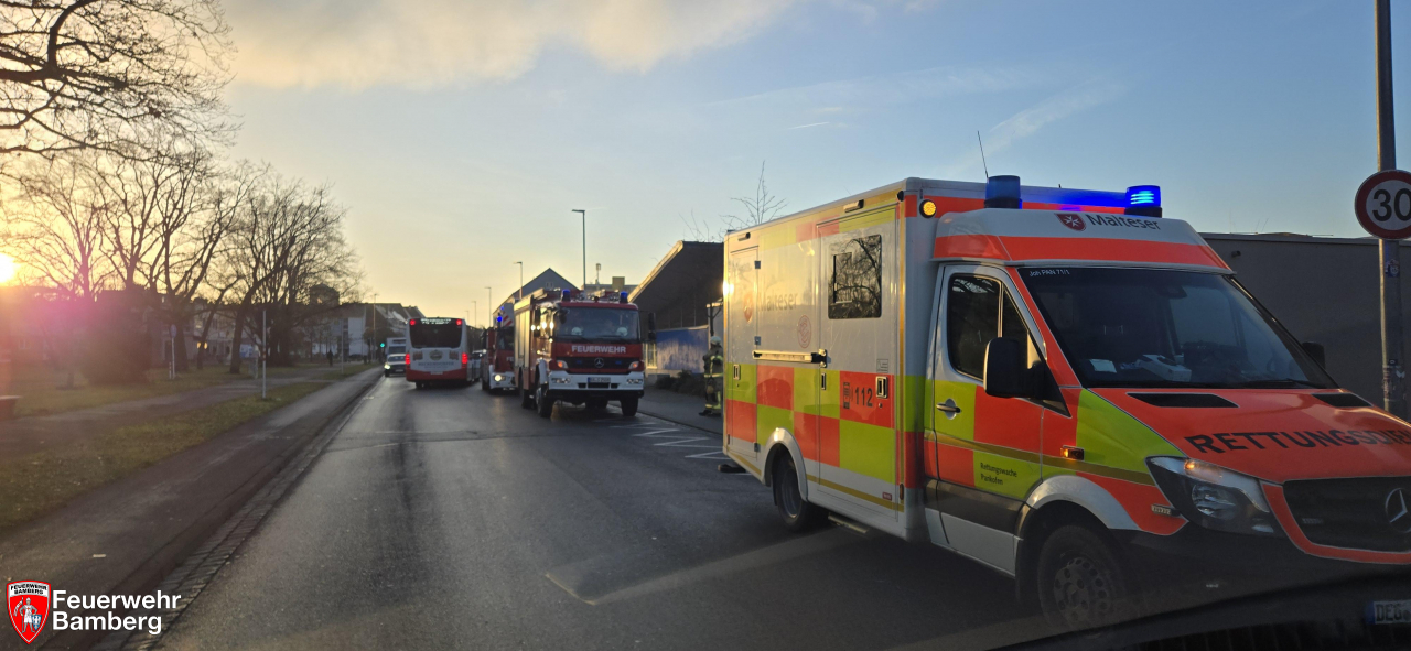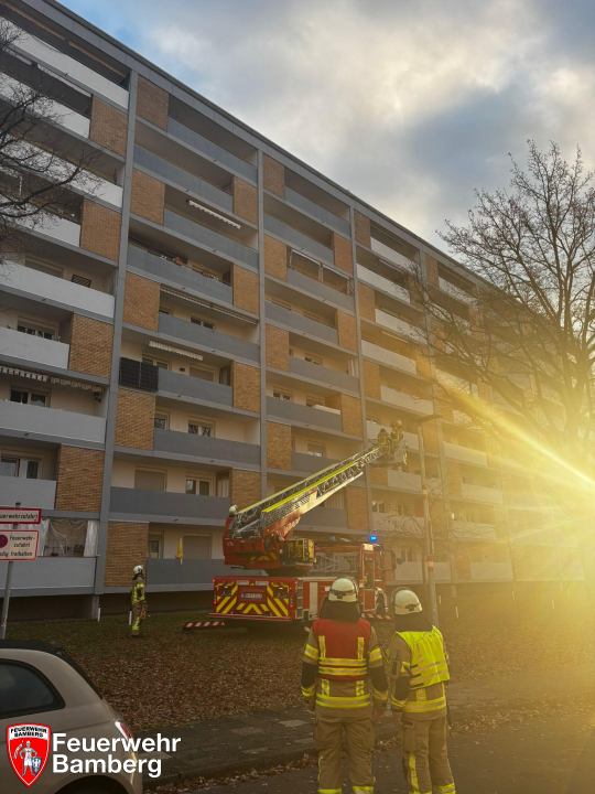 Am Vormittag wurde die Feuerwehr Bamberg zu einem vermeintlichen Zimmerbrand in die Kantstraße alarmiert. Schüler eines benachbarten Gymnasiums hatten Flammenschein an einem Wohnkomplex bemerkt und daraufhin die Feuerwehr alarmieren lassen.