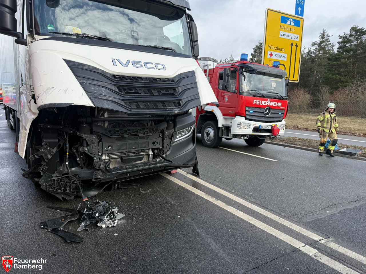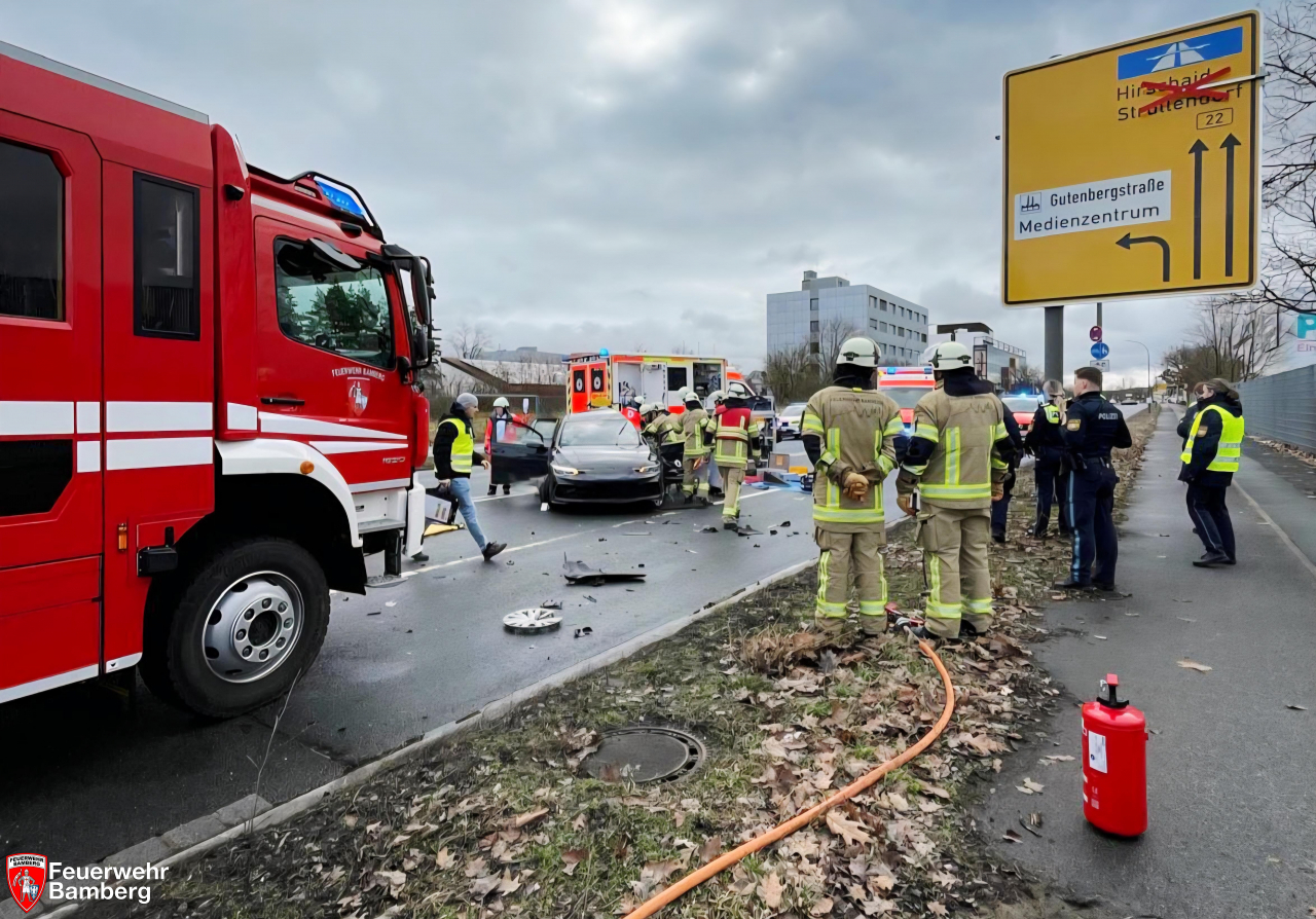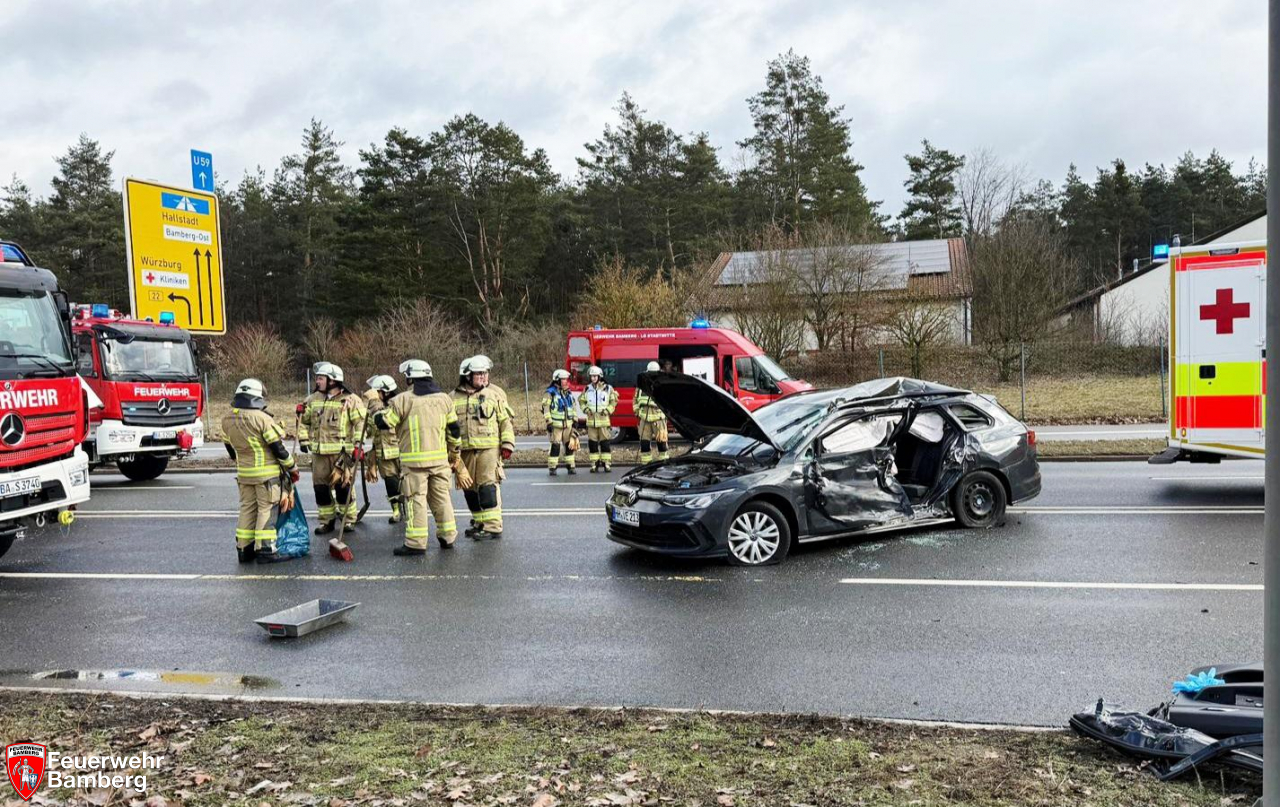 Am Samstag Vormittag wurde die Feuerwehr Bamberg zu einem Verkehrsunfall mit eingeklemmten Personen auf den Berliner Ring alarmiert. Zwischen Münchner Ring und Gutenbergstraße kam es zum Zusammenstoß zwischen einem Pkw und einem Lkw. Hierbei wurde der Pkw-Lenker schwer verletzt und in seinem Fahrzeug eingeklemmt.