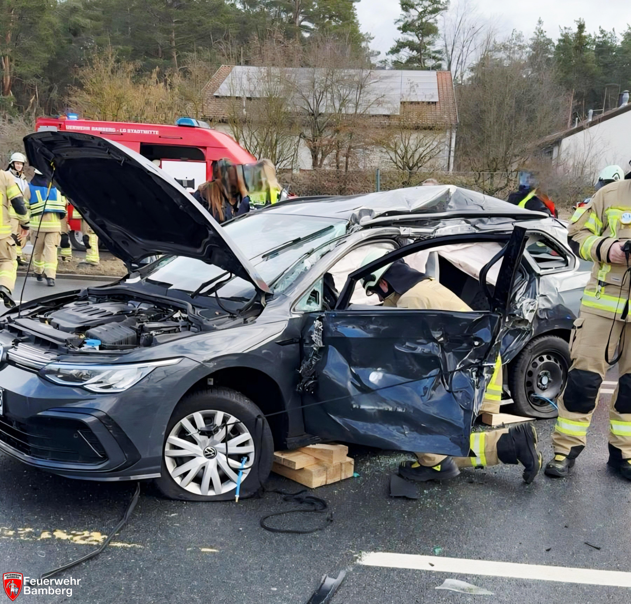 In Absprache mit Notarzt und Rettungsdienst wurde die Personenbefreiung vorbereitet. Hierzu wurden nach erfolgter medizinischer Stabilisierung des Verletzten Fahrzeugteile aus dem schwer beschädigten Fahrzeug herausgetrennt. Wenig später konnte der Verletzte endgültig an den Rettungsdienst übergeben werden. Die Kräfte lösten sich aus dem Einsatz heraus und übergaben die Einsatzstelle an die Polizei.