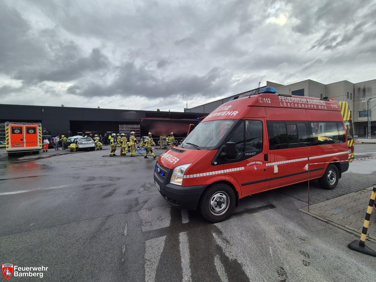 Freitag zur Mittagszeit wurde die Feuerwehr Bamberg auf das Betriebsgelände eines Speditionsunternehmens zur Personenrettung aus Pkw alarmiert. Nach dem Zusammenstoß eines Lkw mit einem Pkw, war dieser so stark verformt, dass sich die Beifahrertür nicht mehr öffnen ließ. Die Person war eingeschlossen, aber nicht eingeklemmt.