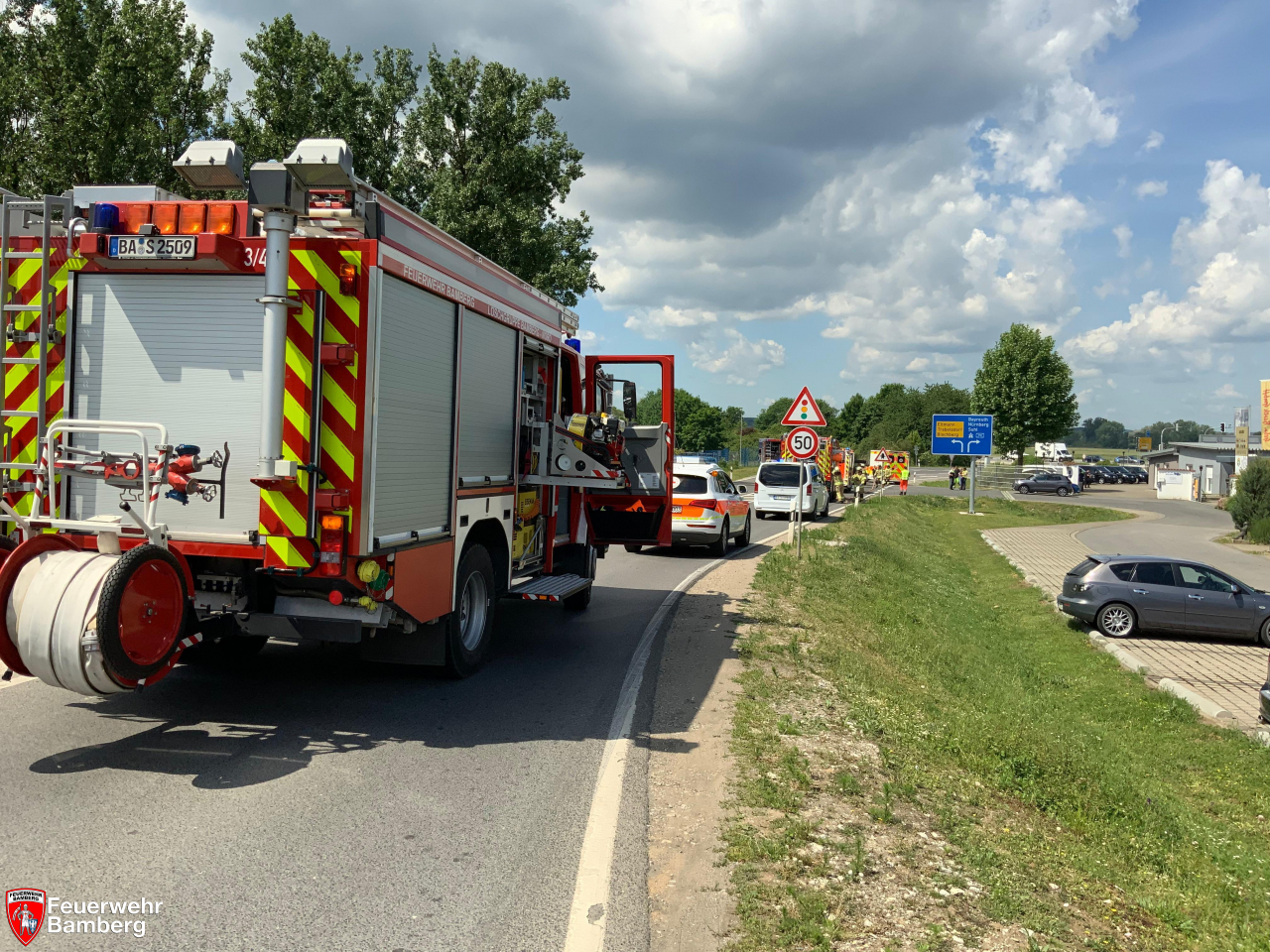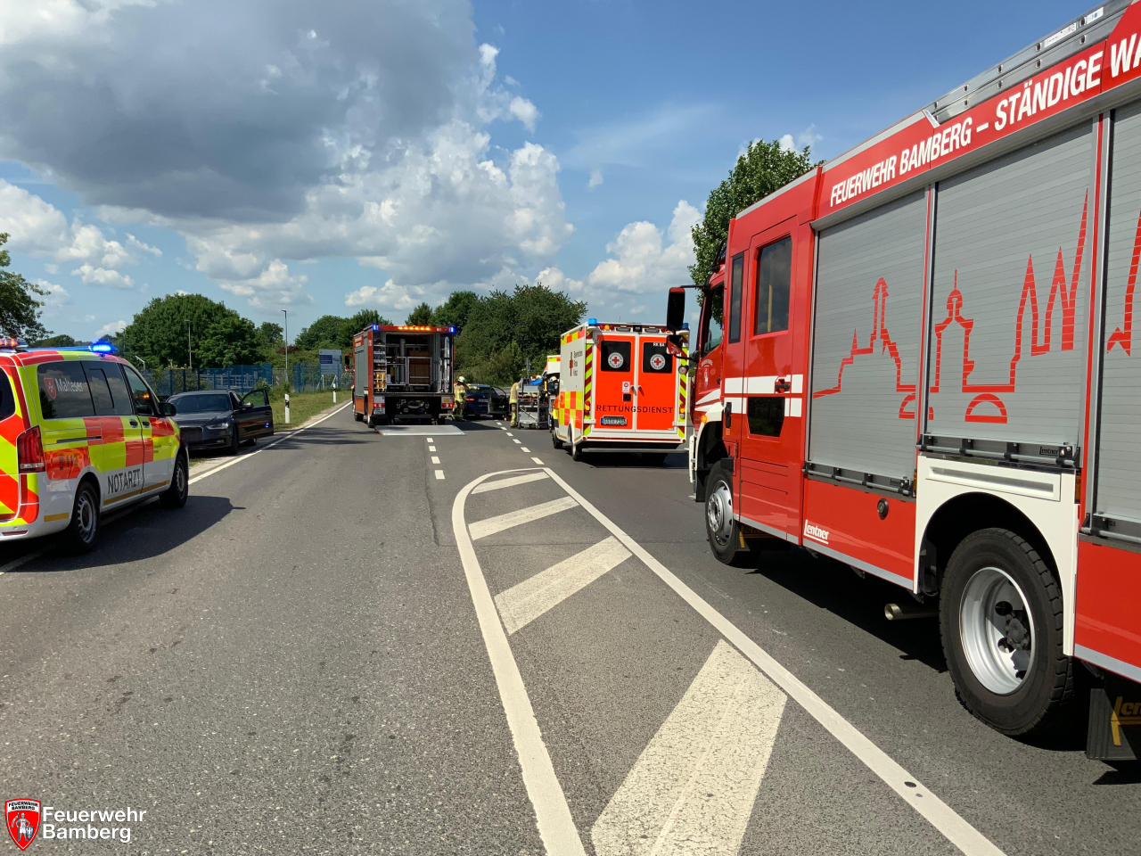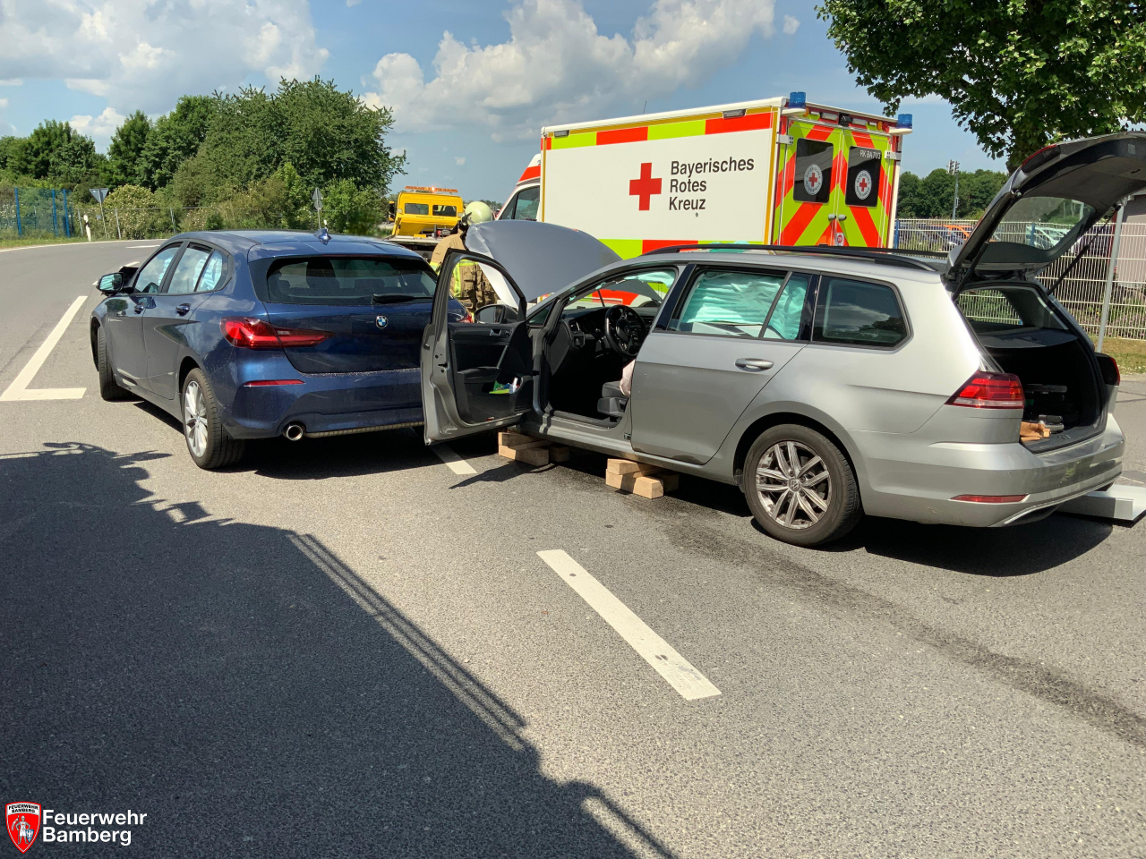 Die Feuerwehr Bamberg wurde am Samstag vor Mittag zu einem Verkehrsunfall mit eingeklemmten Personen alarmiert. Auf der Zufahrt zur B26 fuhren kollidierten zwei Pkw, wobei ein Pkw den anderen in die Seite prallte und den Insassen den Ausstieg versperrte.