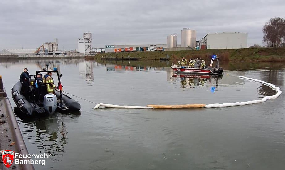 Am Mittwochnachmittag wurde die Feuerwehr Bamberg zunächst mit der Ständigen Wache sowie dem Einsatzleitdienst zur Erkundung an den Bereich Kai 3 im Bamberger Hafen alarmiert. Auf dem Wasser waren deutlich sichtbare Ölschlieren im Bereich des Kai 3 sowie teilweise in der Schifffahrtsstraße festgestellt worden. Die Wasserschutzpolizei war ebenfalls mit vor Ort.