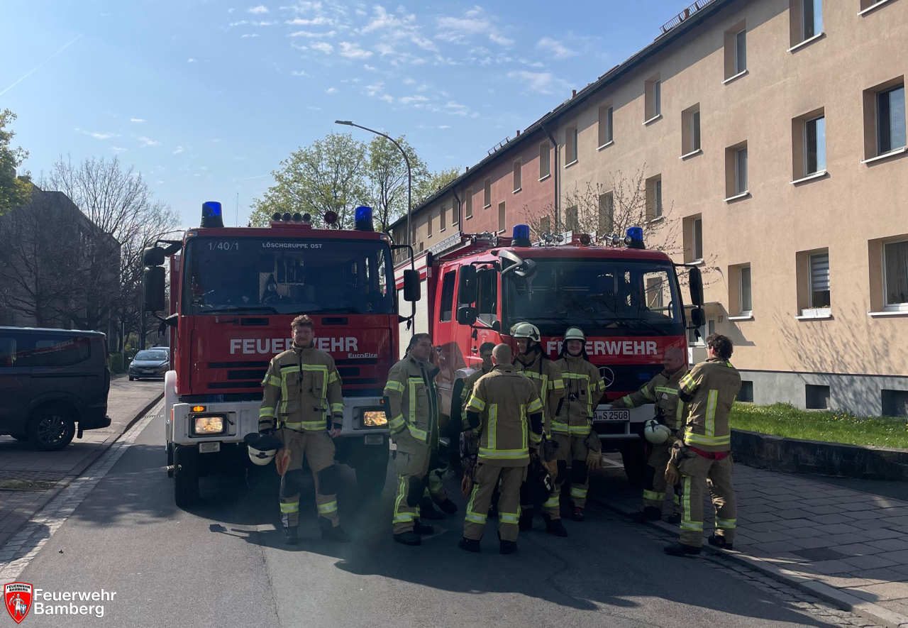 Am Vormittag wurde die Feuerwehr Bamberg zu einer Rauchentwicklung im Gebäude alarmiert. Bewohner eines Mehrfamilienhauses bemerkten auffälligen Rauchgeruch im Kellergeschoß.