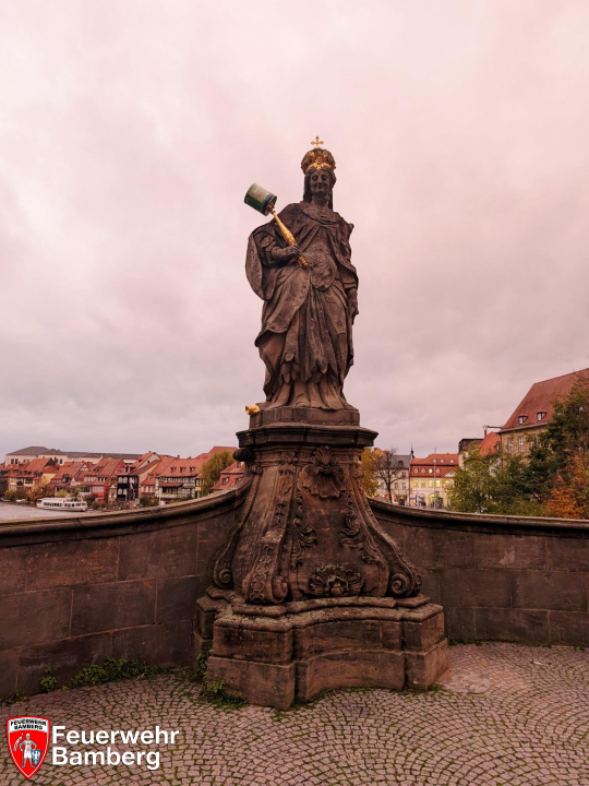 Am Nachmittag wurde die Feuerwehr Bamberg zur Unteren Brücke in der Altstadt alarmiert. Unbekannte hatte die "Kuni" mit einem Blecheimer "verziert". Da dies auf wenig Zustimmung in der Bevölkerung stieß, wurde die Feuerwehr hinzugezogen, um den Zierrat wieder zu entfernen.