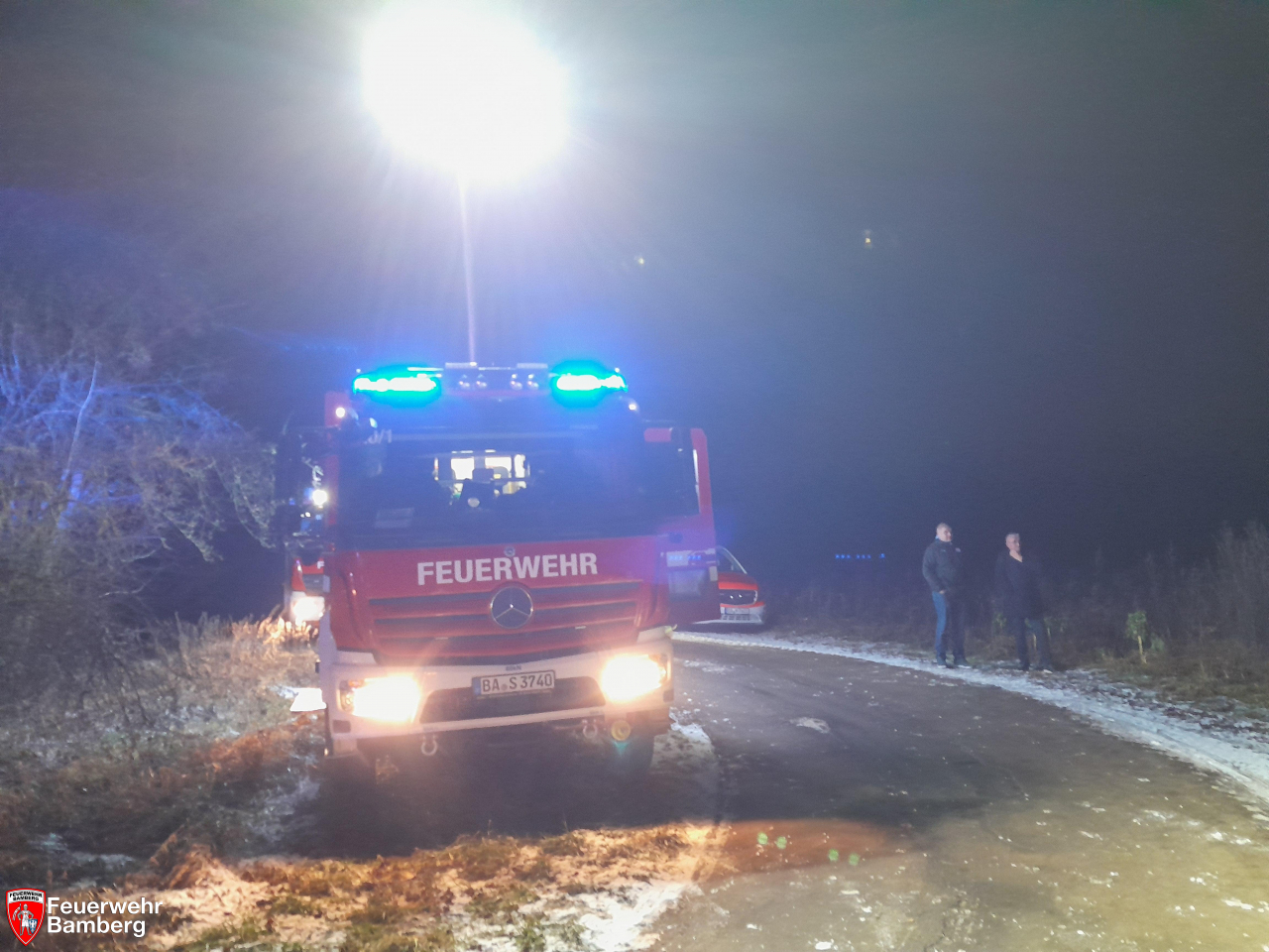 In der Silvesternacht wurde die Feuerwehr Bamberg zu einem Verkehrsunfall nach eCall mit Sprechkontakt alarmiert. Aus dem Fahrzeug waren keine eindeutigen Hinweise zu hören.
