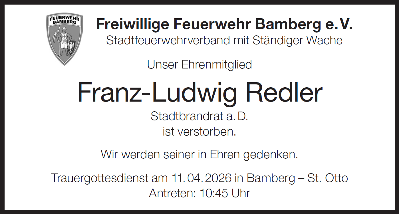 - Feuerwehr Bamberg trauert um Ehrenmitglied Franz-Ludwig Redler