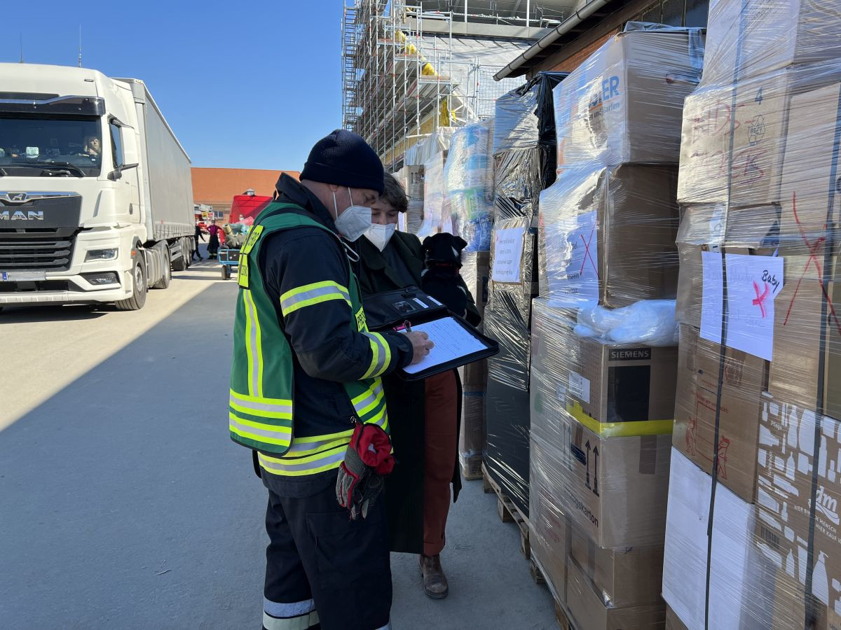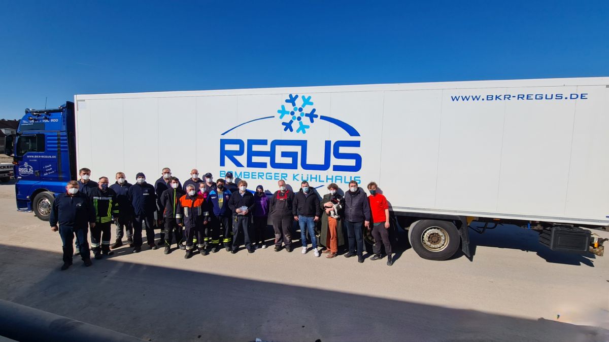 Auch die Feuerwehr Bamberg konnte Dank der Unterstützung der Firma Bamberger Kühlhaus GmbH & Co. KG einen Hilfstransport organisieren. Richtig ins Rollen kam die Aktion am jüngsten Wochenende des 4. bis 6. März, als die großzügig von Bambergerinnen und Bamberger gespendeten Hilfsgüter in der Posthalle Lagarde eintrafen und stundenlang auseinandergenommen, sortiert und wieder verpackt werden mussten. Hauptinitiatorin ist hier Katharina Breinbauer, die fast ausschließlich ihre Tage in der Posthalle verbrachte und noch verbringen wird und schon einige Erfahrung mit dem Organisieren von Hilfsgütern vorweisen kann. Seitens der Feuerwehr Bamberg organisierten federführend Franziska Schmidt (LG1) und Thomas Schlauch (LG4), nachdem selbst beide etliche Stunden hierbei mitgeholfen haben, tägliche Sortier- und Bestückungsaktionen. Um aber den Menschen vor Ort noch mehr helfen zu können, suchte und fand man bei Stephan Regus, Geschäftsführer der Bamberger Kühlhaus GmbH & Co. KG, vollstes Verständnis und ein offenes Ohr. Kurzerhand stellte er einen 40-Tonner Sattelzug aus seinem Fuhrpark zur Verfügung und organisierte eine Route, damit die Hilfsgüter auch an den richtigen Stellen ankommen, wo sie gebraucht werden.