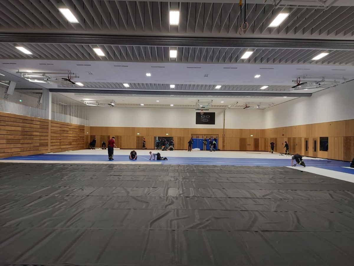 Nachdem bereits die Turnhalle der Berufsschule Ohmstraße für Flüchtlinge aus der Ukraine zur Notunterkunft u.a. mit Betten umfunktioniert wurde, musste nun eine weitere Halle umgebaut werden.