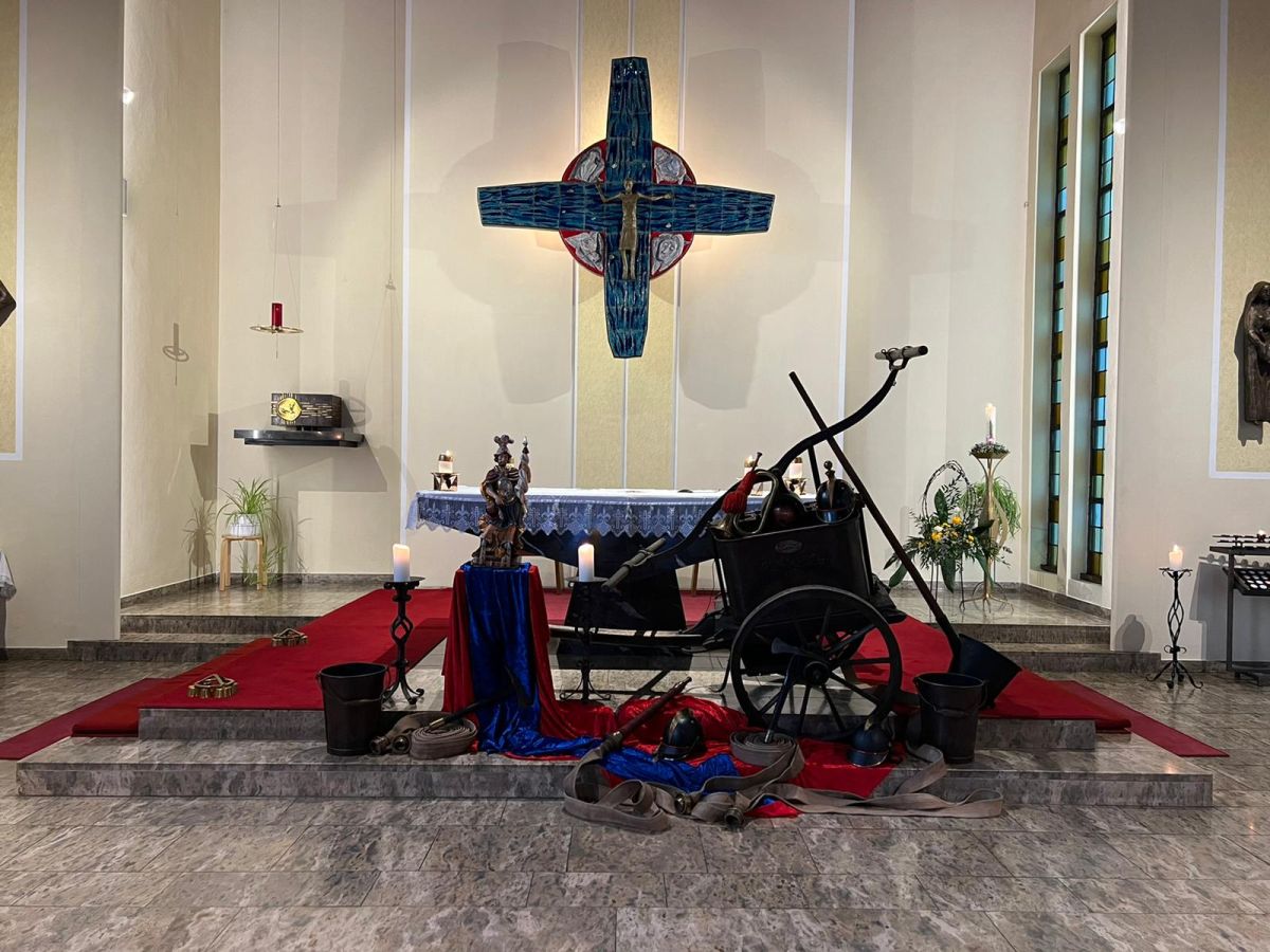 Pfarrer Dr. Kohmann zelebrierte den Gottesdienst und betonte wie wichtig eine funktionierende Feuerwehr für die Gesellschaft sei. „Es tut gut zu wissen, dass man sich jederzeit sicher fühlen kann“, betonte er und bedankte sich bei allen ehren- sowie hauptamtlichen Feuerwehrkräften.