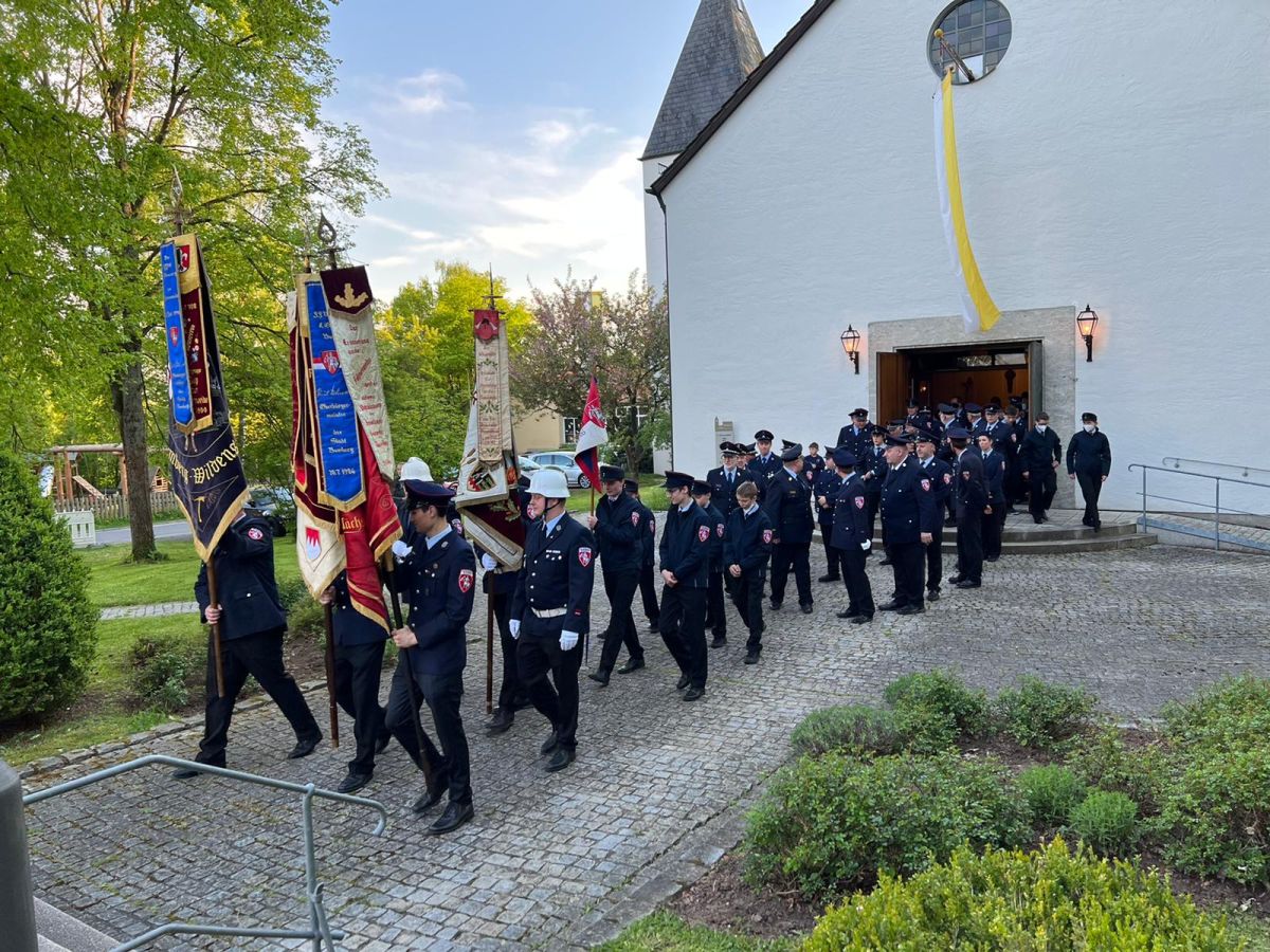 Die Freiwillige Feuerwehr Bamberg hielt ihren Florianstag somit bei bestem Sonnenschein am Samstag, den 7. Mai ab und konnte so nach zweijähriger, coronabedingter Zwangspause endlich wieder gemeinsam einen Gottesdienst feiern. Etliche Mitglieder der Bamberger Wehr versammelten sich traditionell bei der Löschgruppe 8 in Wildensorg, stellten ihre Fahnen und den Jugendwimpel in erste Reihe und zogen in die katholische Kirche St. Joseph Wildensorg ein. Neben der Hauptfahne der Freiwilligen Feuerwehr Bamberg standen auch die Fahnen der drei eingemeindeten, einst selbstständigen Ortsteile Bug, Gaustadt und Wildensorg zusätzlich zum Wimpel der Jugendfeuerwehr in der Abordnung. Dies war seit langer Zeit wieder eine Veranstaltung, an der alle Fahnen, welche die Feuerwehr Bamberg zu bieten hat, vereint für eine Veranstaltung Aufstellung genommen haben.