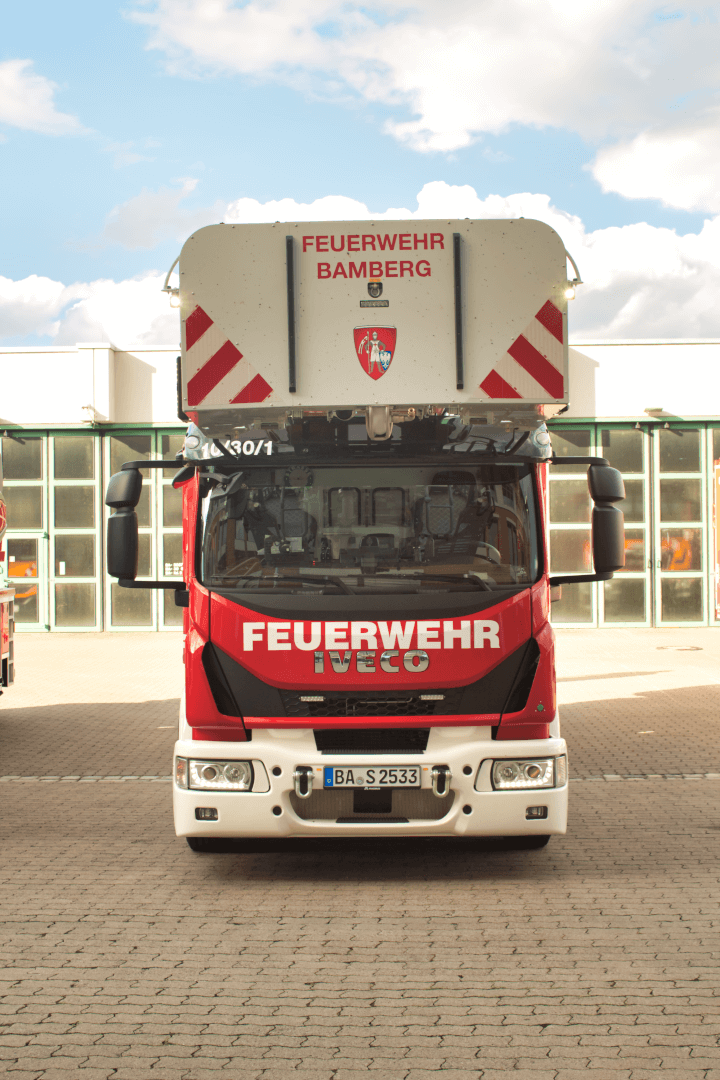 Mit rund 680.000,- Euro konnte das Fahrzeug durch die Stadt Bamberg beschafft werden. Nun wird es durch die Ständige Wache in den kommenden Tagen für den Einsatzdienst aufgerüstet und gar in Dienst genommen. Gleichzeitig wird die derzeitige Drehleiter der Hauptwache noch in die CI-Beklebung der Bamberger Wehr gesetzt und anschließend nahtlos in den Dienst bei der Löschgruppe 1 überstellt. Somit wird in etwa zwei Wochen das reguläre Alarmierungskonzept der Feuerwehr Bamberg wieder reaktiviert.