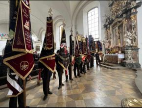 Bei gleich zwei besonderen kirchlichen Festen war die Freiwillige Feuerwehr Bamberg am Sonntag, den 21. August 2022 vertreten. Die Corpsfahne nahm mit einer Abordnung an der großen Muttergottesprozession teil, an der die freudenreiche Muttergottes-Statue der Oberen Pfarre die Darstellung der schmerzhaften Muttergottes von St. Martin besucht.