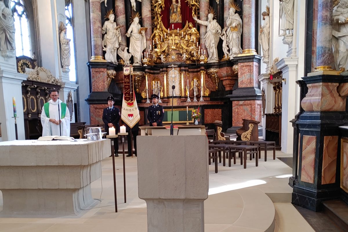 Beginnend am Sonntag, den 7. August 2022 fand der Gedenkgottesdienst zum Geburtstag der Löschgruppe in der Oberen Pfarre statt. In dem Gottesdienst wurde vor allem vermittelt, was Feuerwehr bedeutet und wie wichtig diese für unsere Gesellschaft geworden ist. Dazu gab es einen Einblick in den kompletten Werdegang der Löschgruppe 7 von der Gründung bis zum heutigen Tag. Selbstredend wurde auch den verstorbenen, vermissten und gefallenen Kameradinnen und Kameraden in einem stillen Moment gedacht. Die Freiwillige Feuerwehr Bamberg, insbesondere die Löschgruppe Kaulberg, bedankt sich herzlich beim scheidenden Pfarrer Matthias Bambynek für seine jahrelange Arbeit zum Wohle der Feuerwehr und speziell für den wundervoll ausgerichteten Gottesdienst zum Jubiläum. Für seinen weiteren Weg alles erdenklich Gute und stets Gottes Segen.