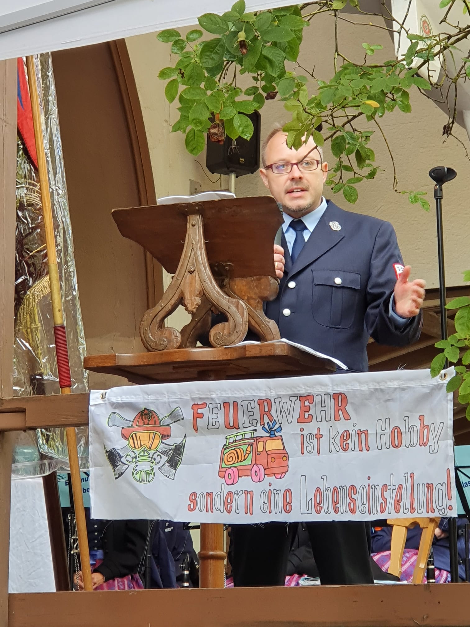 Bevor es dann vom festlichen in den gemütlichen Teil überging, blickte Vorsitzender des Freiwilligen Feuerwehr Bamberg e.V. Michael Zopf auf die vergangenen 150 Jahre der heutigen Löschgruppe 7 - Kaulberg zurück.
