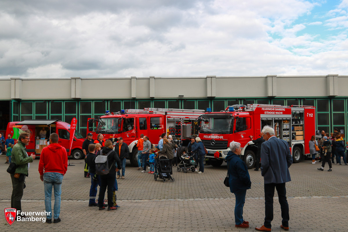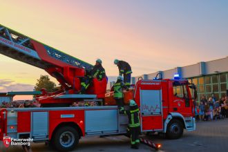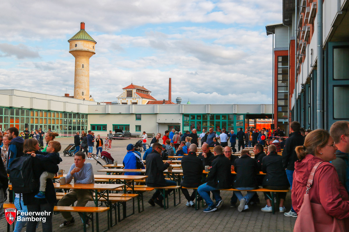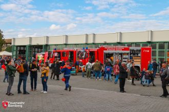 Die Feuerwehr Bamberg bedankt sich besonders beim Kinderschminkteam des Jugendrotkreuzes, bei den Bereitschaften des BRK, bei allen anderen Unterstützerinnen und Unterstützern vor Ort, bei der Metzgerei Kalb, bei Crêpes mit Charme, beim Eismobil La Coppa, bei der Brauerei Kaiserdom und vor allem bei allen Kameradinnen und Kameraden der eigenen Wehr!