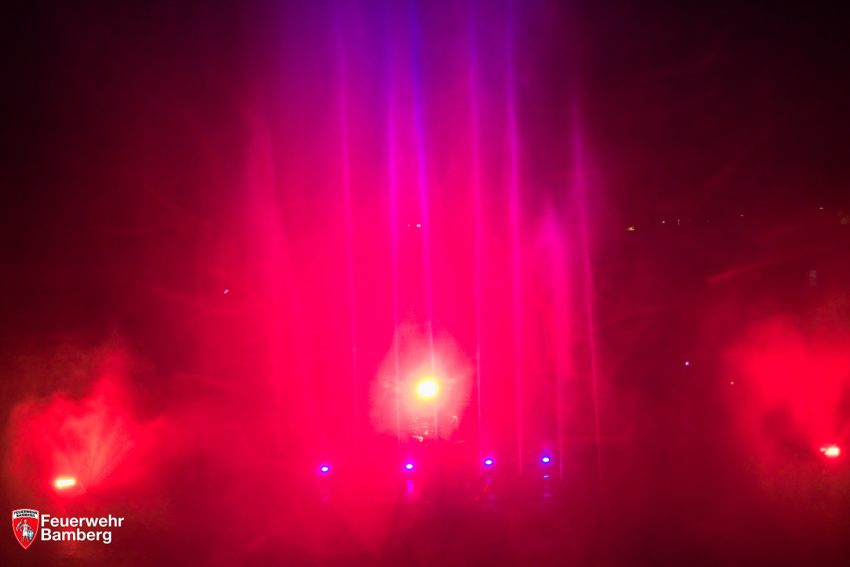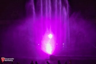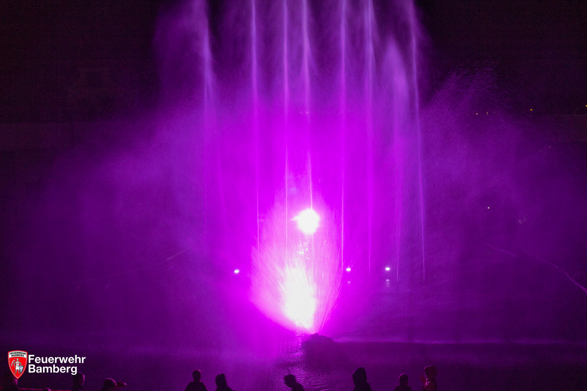 Den Abschluss der Veranstaltung machten die mit viel Mühe vorbereiteten Wasserspiele. Bekannt aus Wildensorg hielten diese nun im Innenhof der Ständigen Wache Einzug. Eindrucksvoll und musikalisch untermalt schossen die mit Lichteffekten hinterlegten Fontänen in die Höhe. Mit Ende der Wasservorführung endete auch in strahlend bunter Atmosphäre ein spannender und gelungener Tag. Stadtbrandrat Florian Kaiser, Amtsleiter Christian Seitz und Organisator Stadtbrandmeister Maximilian Lengel resümierten noch am Abend: „Wir sind überwältigt vom Interesse der Besucherinnen und Besucher und stolz auf unsere Kameradinnen und Kameraden sowie Mitarbeiterinnen und Mitarbeitern. Die Bürgerinnen und Bürger dürfen sich auch in Zukunft auf ähnliche Veranstaltungen freuen.“
