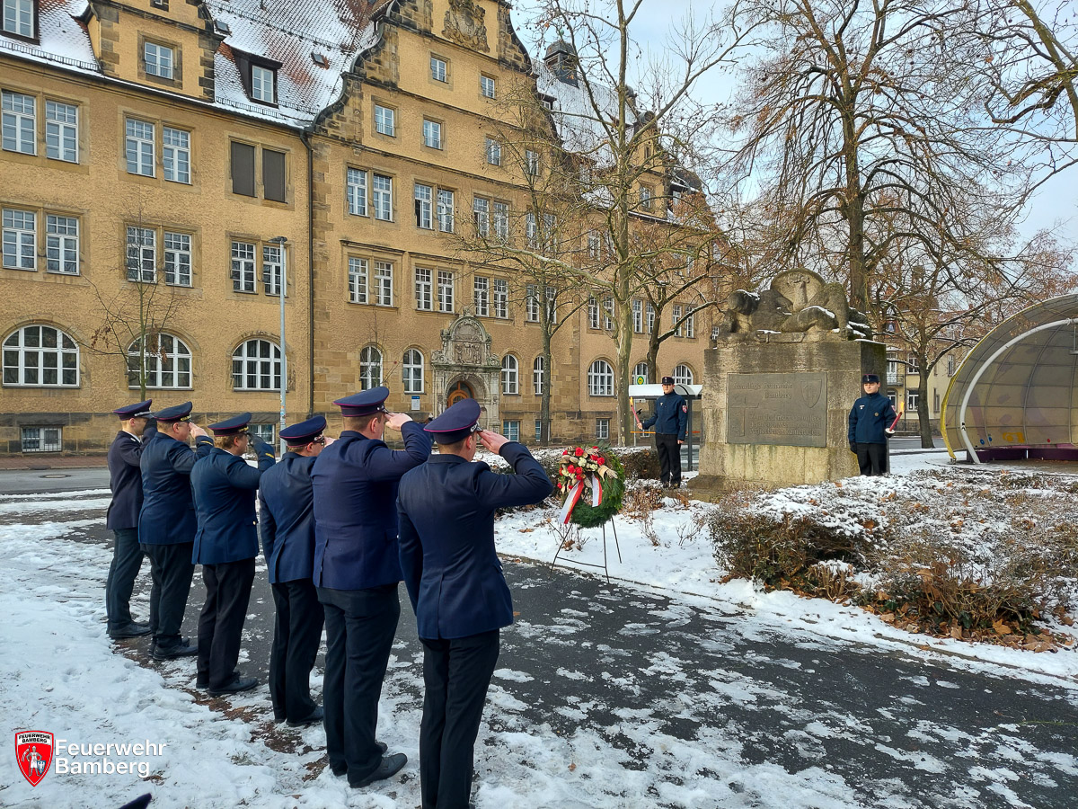 Als Zeichen der Anerkennung und Dankbarkeit legte man einen Kranz nieder und es wurde allen Kameradinnen und Kameraden seit Gründung der Freiwilligen Feuerwehr Bamberg am 16. Januar 1860, aber insbesondere der im vergangenen Jahr Verstorbenen, gedacht.