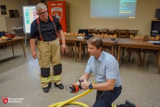 Durch ein modernes VR-System kann ein nahezu müheloser Übungsdurchgang jederzeit angetreten werden. Möglich macht dies der Freistaat Bayern, welcher nun VR-Systeme für die Feuerwehren der kreisfreien Städte und Landkreise beschafft hat. Ausgegeben wurden diese hoch modernen Systeme bereits im Frühjahr 2024. Aufgrund des neuen Weges der Ausbildung, musste das System in einem Probebetrieb detailliert betrachtet und unter den Bamberger Ausbildern besprochen werden. Schließlich möchte man diese brandneue Methode auch richtig verstehen und umsetzen können.