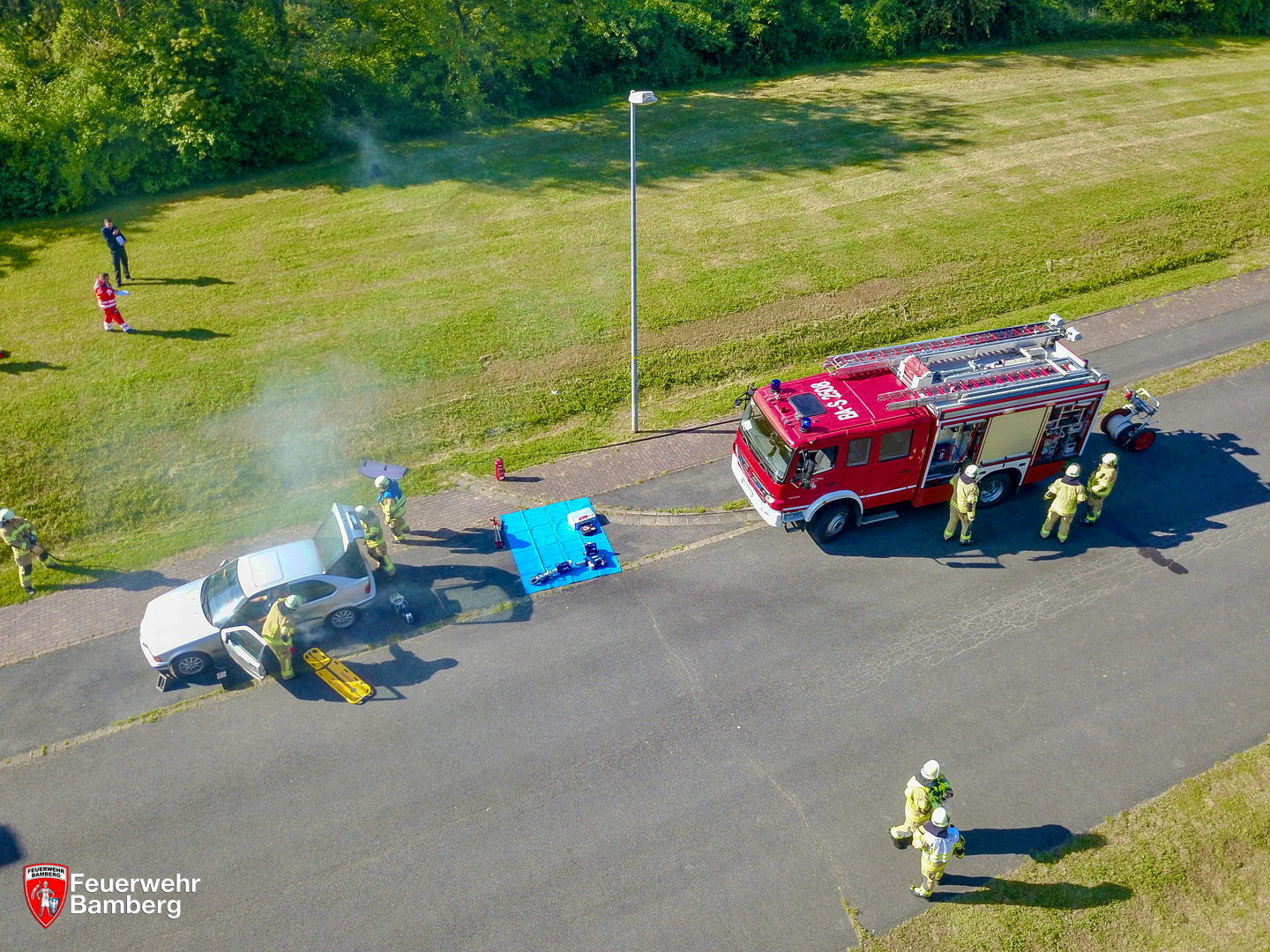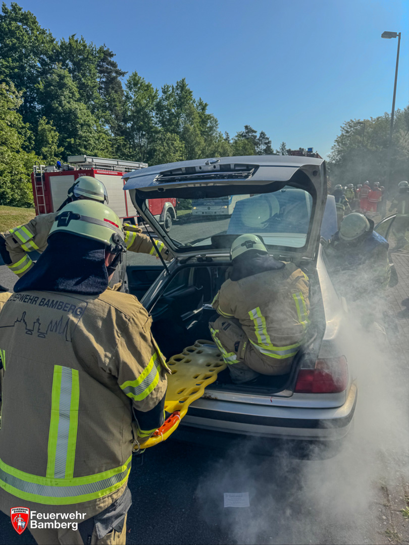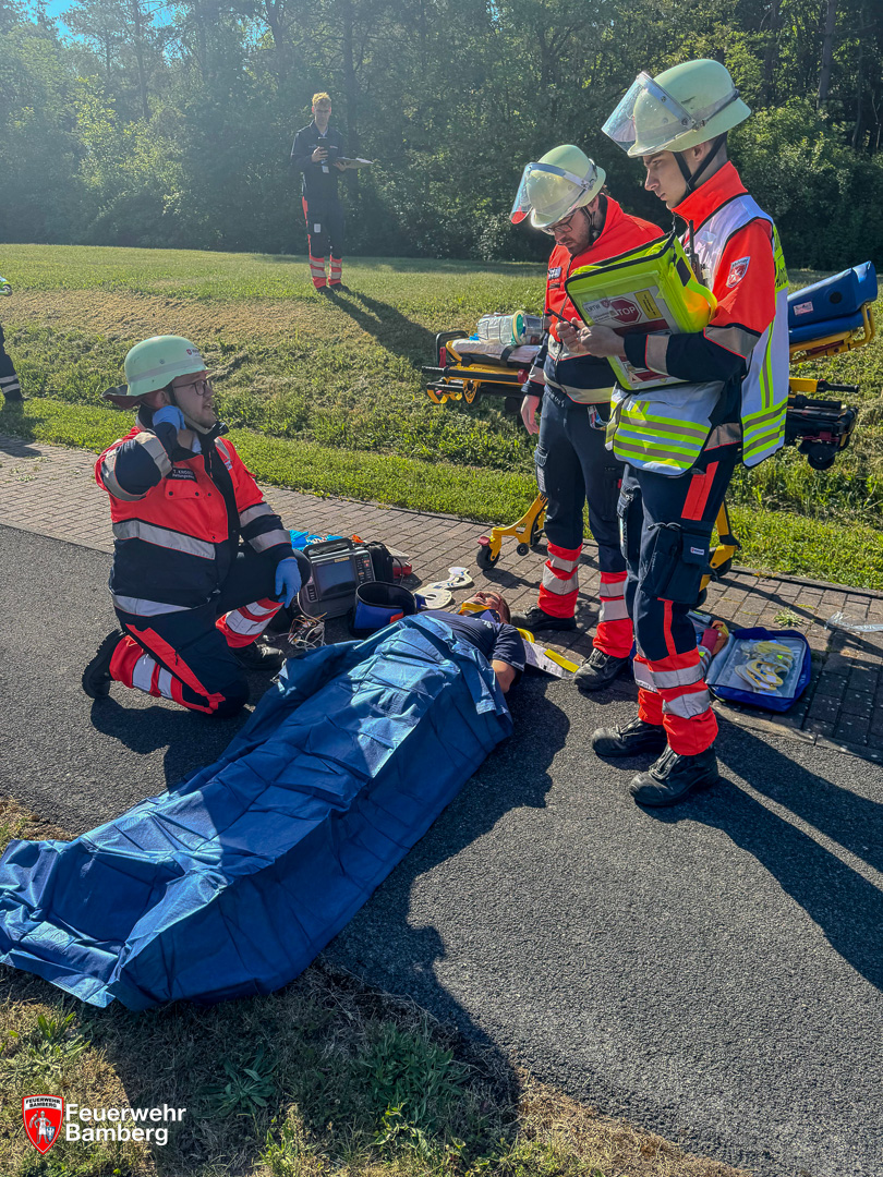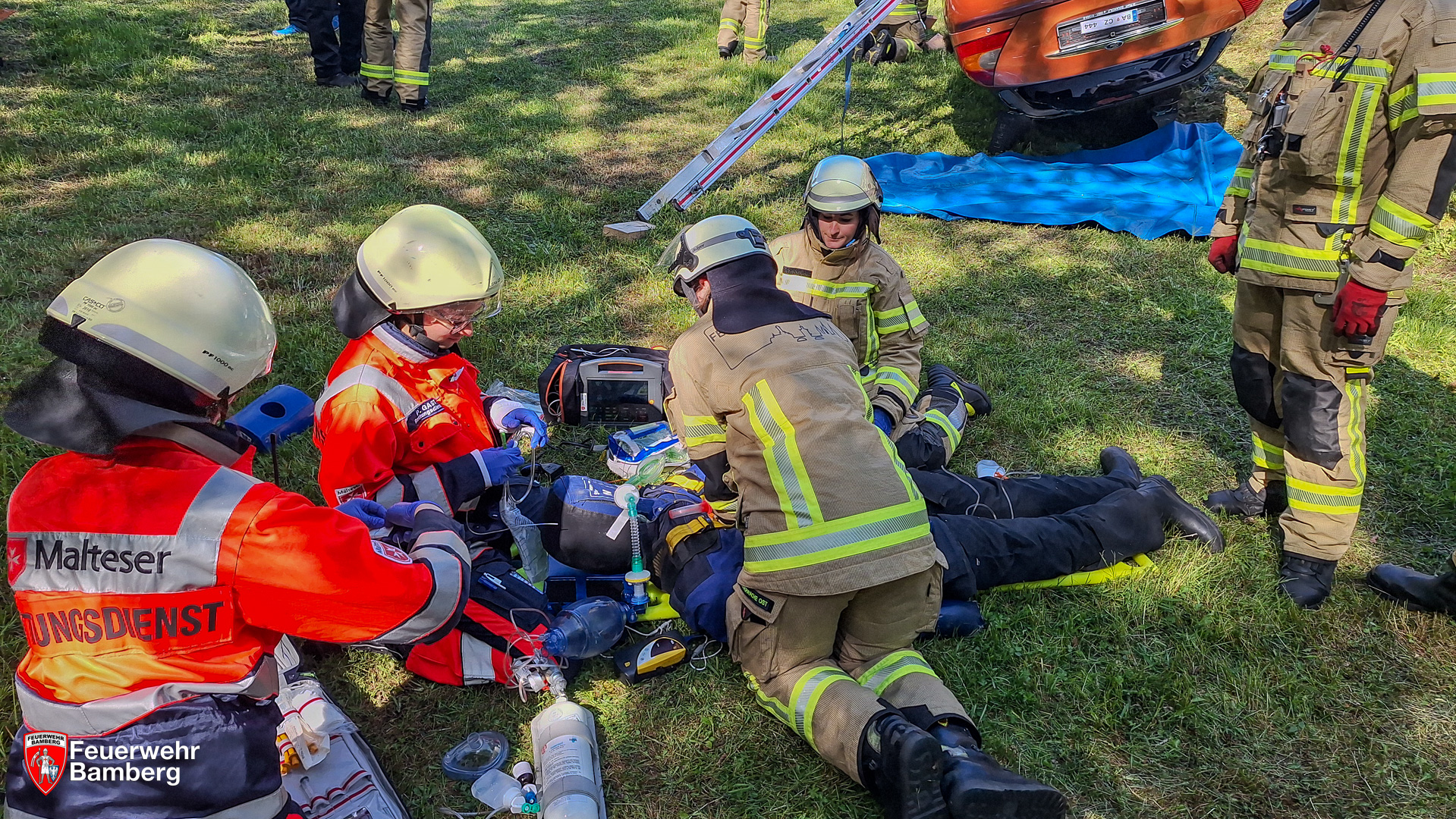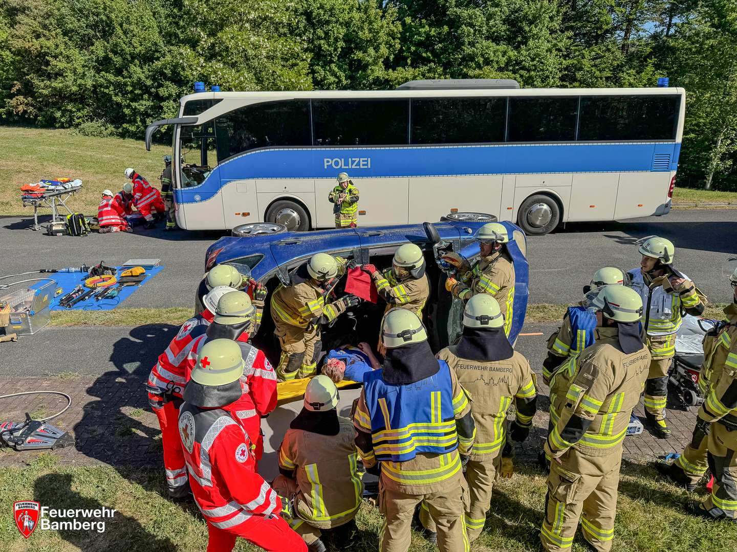 Am Samstagvormittag, den 24.05.2025 fand auf dem Gelände der Bundespolizei in Bamberg eine groß angelegte Einsatzübung statt. Durch die Bundespolizei und den Fachbereich 3 - Aus- und Fortbildung der Feuerwehr Bamberg wurde in enger Zusammenarbeit ein Szenario erarbeitet mit dem Ziel, parallele Einsatzmaßnahmen darzustellen und die Zusammenarbeit zwischen Feuerwehr und Rettungsdienst zu stärken.