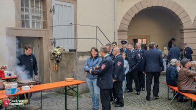 Bei einem gemütlichen Beisammensein im Hinterhof der Martinskirche mit Grillgut und Getränken konnten die neuen Fahrzeuge noch besichtigt werden, und auch der kameradschaftliche Austausch kam nicht zu kurz.