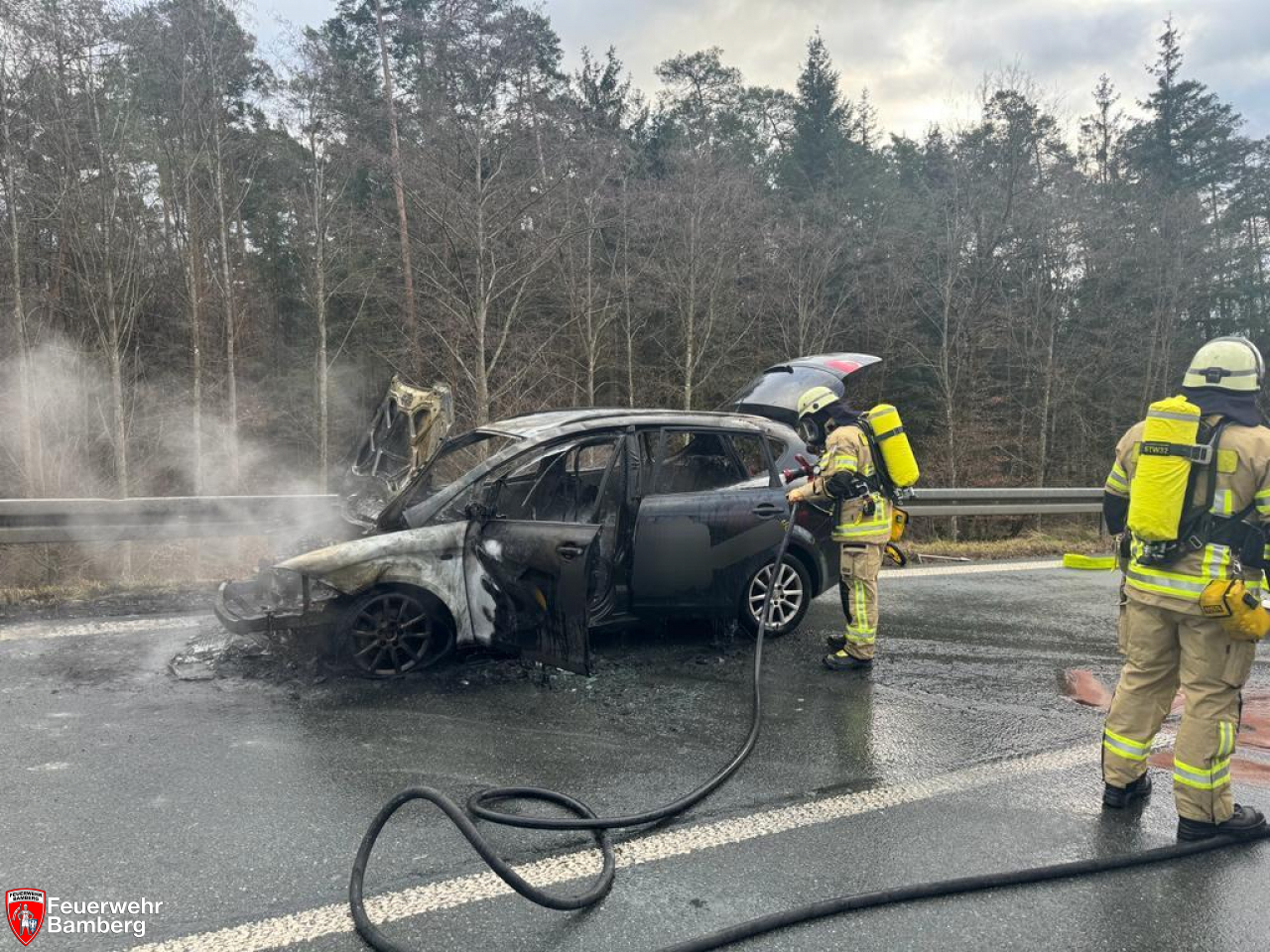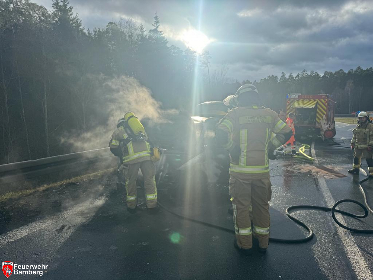 Am Nachmittag wurde die Feuerwehr Bamberg zur A73, Anschlussstelle Bamberg Ost zu einem Pkw-Brand alarmiert.