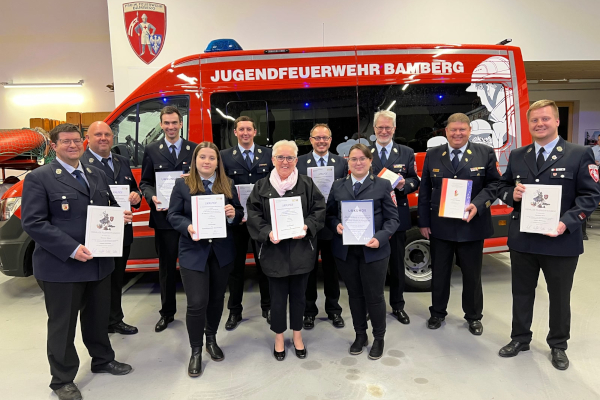 Dennoch gab es bei der Jugendfeuerwehr einige Ehrungen, welche 2020 und 2021 hätten an die zu Ehrenden verliehen werden sollen. Auch wenn 2021 endlich wieder eine Dienst- und Mitgliederversammlung der Bamberger Wehr stattfinden kann, darf aus pandemischen Gründen keine persönliche Ehrung auf der Bühne stattfinden.
