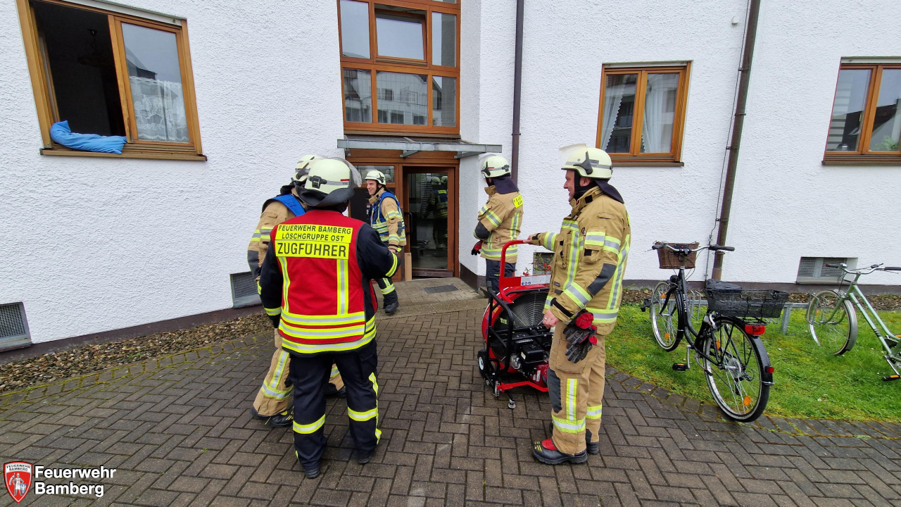 Am Nachmittag wurde die Feuerwehr Bamberg zu einem gemeldeten Zimmerbrand am Birkengraben alarmiert. Anwohner bemerkten Rauchgeruch und alarmierten die Rettungskräfte. Zudem wurde noch der Bewohner in der betroffenen Wohnung vermutet.