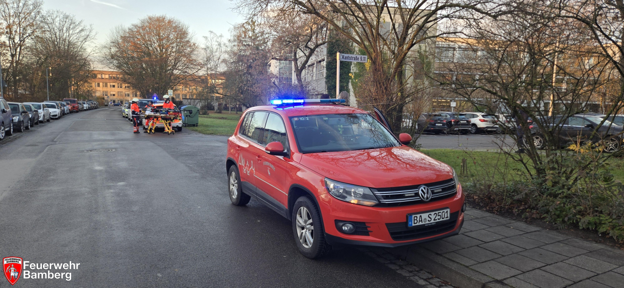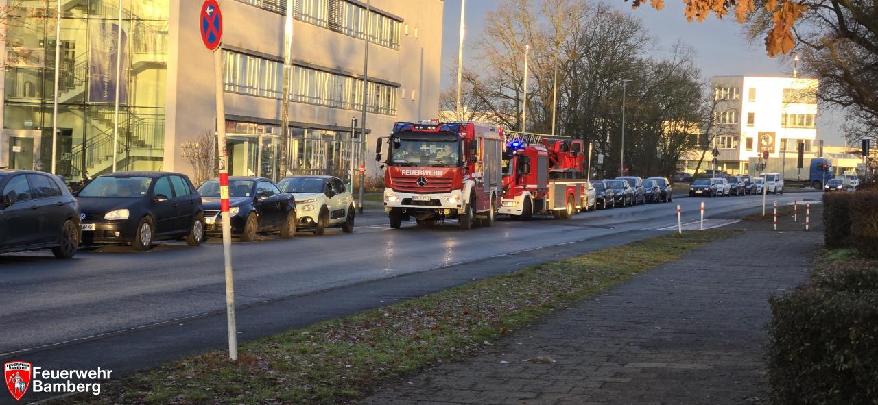 Am Vormittag wurde die Feuerwehr Bamberg zu einem vermeintlichen Zimmerbrand in die Kantstraße alarmiert. Schüler eines benachbarten Gymnasiums hatten Flammenschein an einem Wohnkomplex bemerkt und daraufhin die Feuerwehr alarmieren lassen.