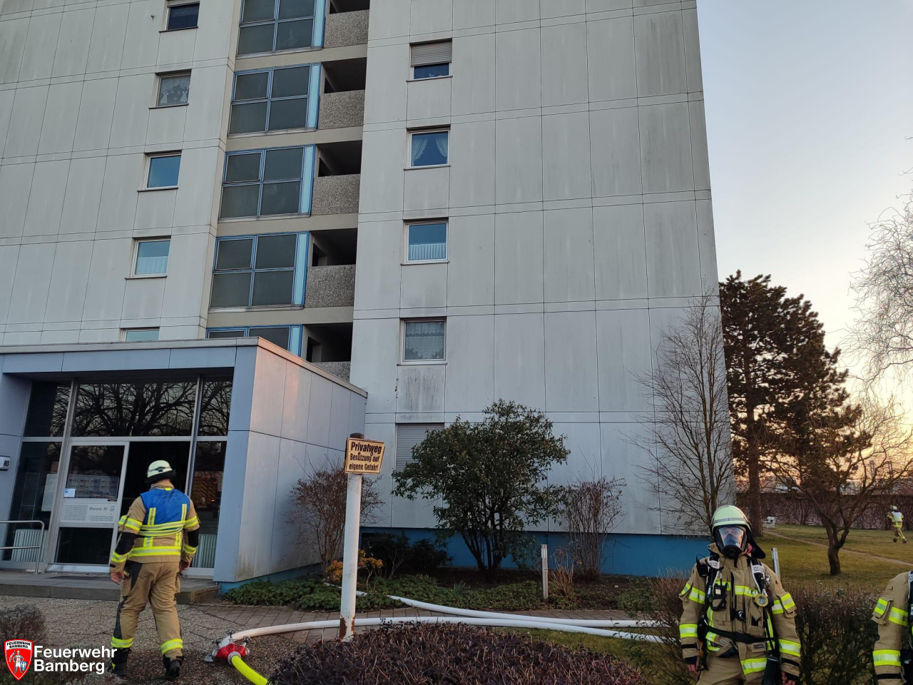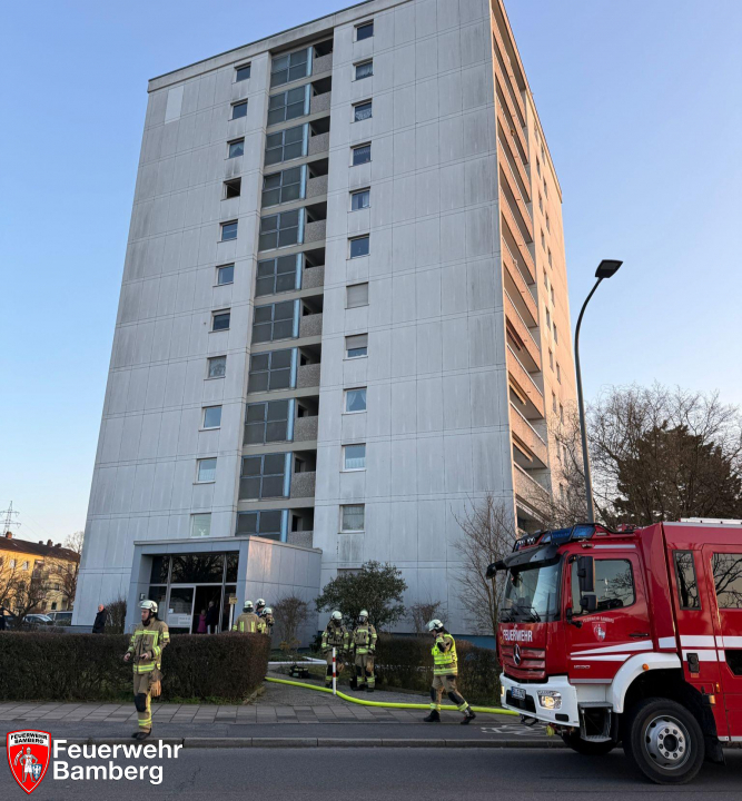 Am Donnerstag Abend wurde die Feuerwehr Bamberg zu einem Zimmerbrand in einem Hochhaus an der Moosstraße alarmiert. Nachbarn hörten das Piepsen eines Rauchwarnmelders und es drang leichter Rauch aus der Wohnung.