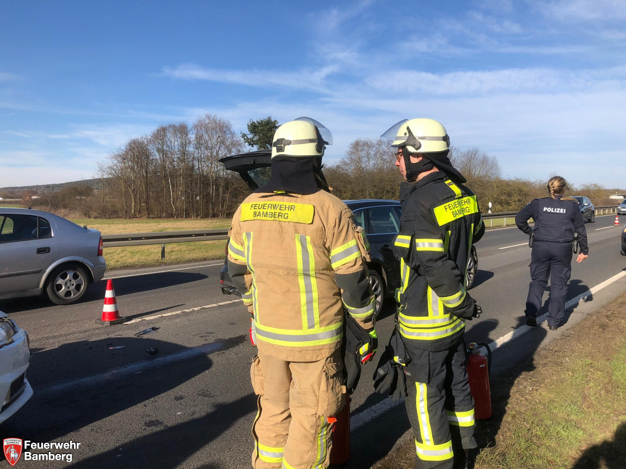 Am Nachmittag wurde die Feuerwehr Bamberg nochmals zu einem Verkehrsunfall mit eCall alarmiert. Diesmal ging es Richtung Bischberg auf die B26. Da die Ständige Wache bereits in einem Einsatz gebunden war, wurde direkt die Löschgruppe 3 und Löschgruppe 4 alarmiert. Wieder kam mit den Verunfallten kein Sprachkontakt zustande und ein Personenschaden wurde angenommen.