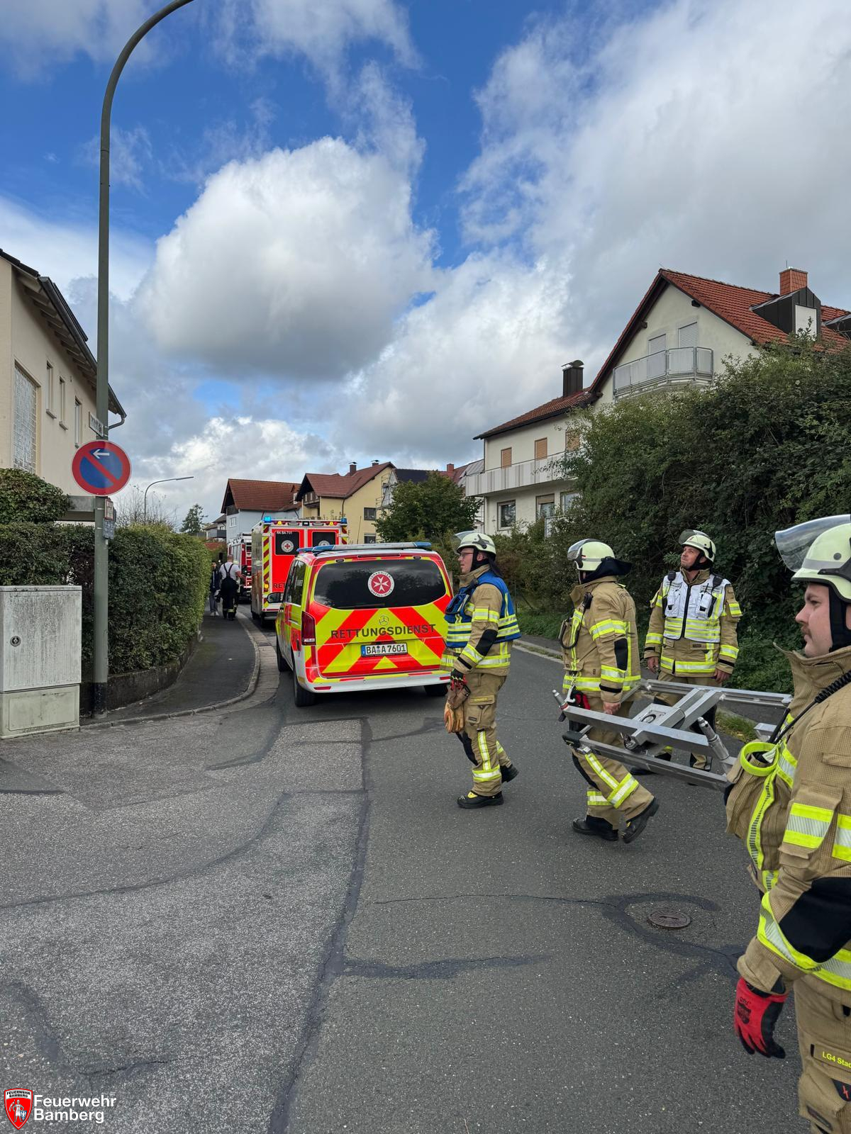 Die Feuerwehr Bamberg wurde am Vormittag nach Stegaurach zu einer Drehleiterrettung alarmiert. Eine verletzte Person musste liegend möglichst schonend aus der eigenen Wohnung zum Rettungswagen verbracht werden.