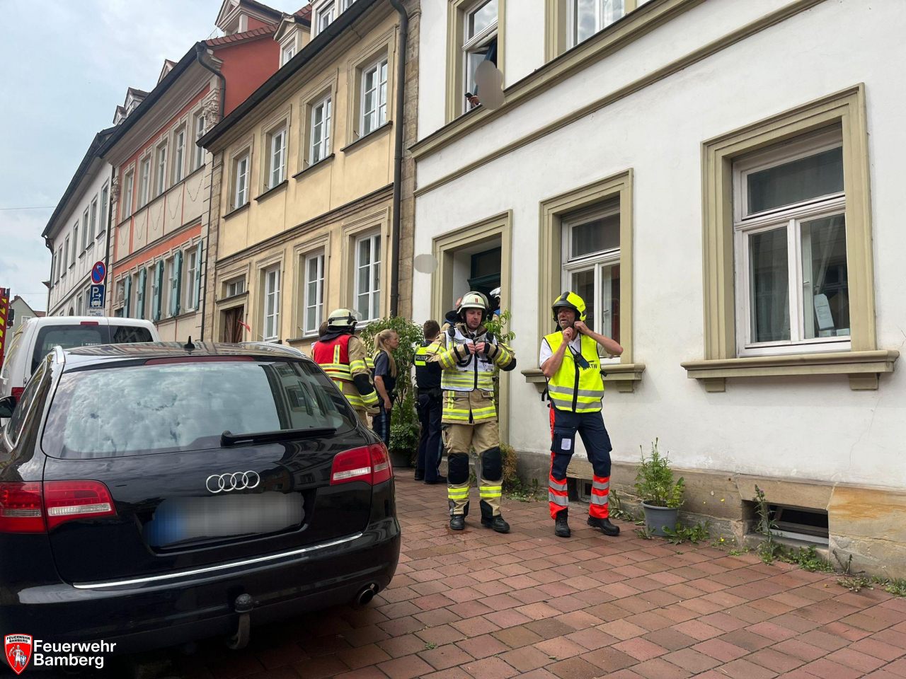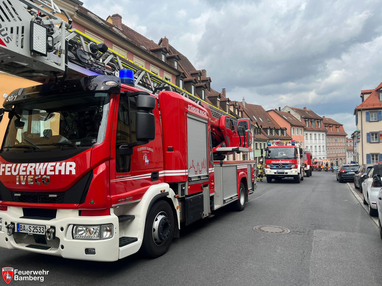 Am Vormittag wurde die Feuerwehr Bamberg zu einer Rauchentwicklung im Gebäude am Kaulberg alarmiert. Anwohner hörten den Alarm eines Rauchwarnmelders und sahen Rauch aus einem Fenster aufsteigen.