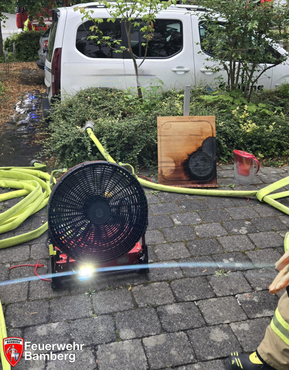 Am Abend wurde die Feuerwehr Bamberg ins Berggebiet zu einem Küchenbrand alarmiert. Bis zum Eintreffen der alarmierten Kräfte gelang es der Bewohnerin sich und ihre Kinder ins Freie in Sicherheit zu verbringen. Auf der eingeschalteten Herdplatte hatten brennbare Gegenstände angefangen stark zu rauchen und standen kurz davor in Brand zu geraten. Auch diese verbrachte die Bewohnerin noch aus der Wohnung.
