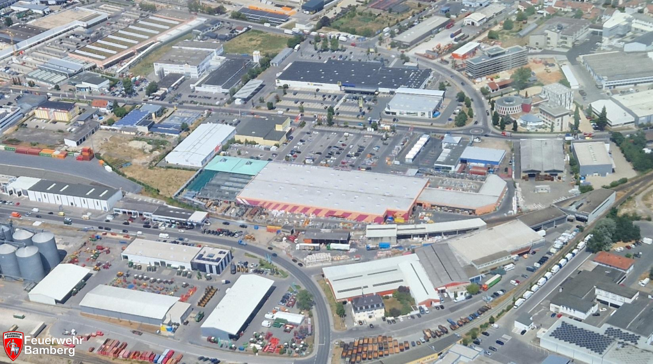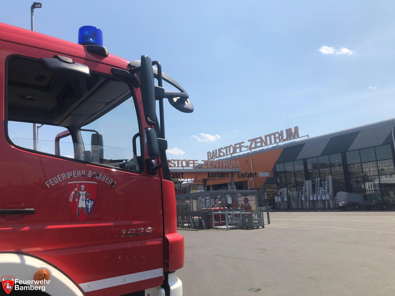Am Nachmittag wurde die Feuerwehr Bamberg per Großalarm zu einem Brand auf der Verkaufsfläche eines Baumarktes am Laubanger alarmiert.